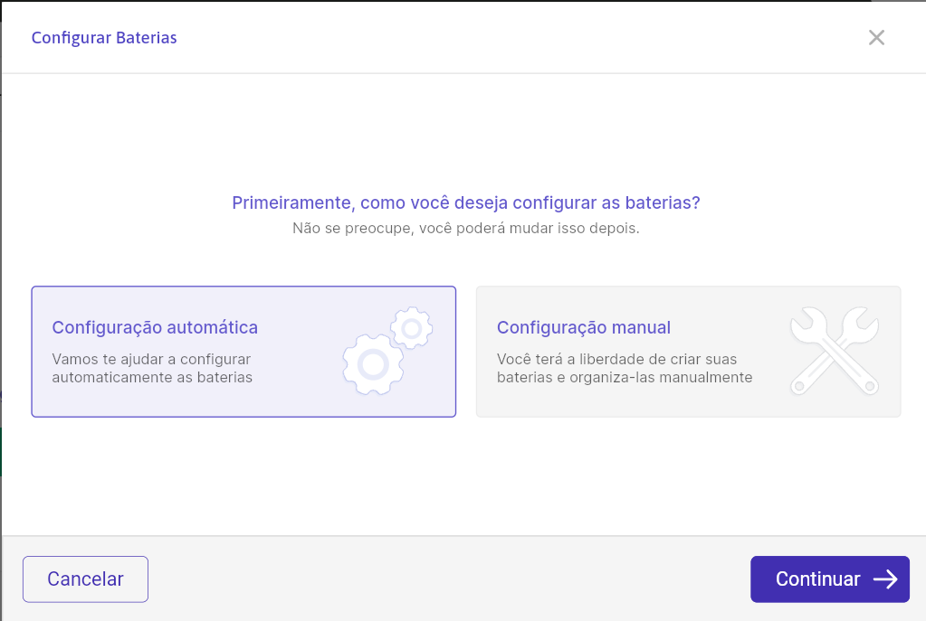 - Configure as baterias só depois que as inscrições estiverem finalizadas — isso evita retrabalho.