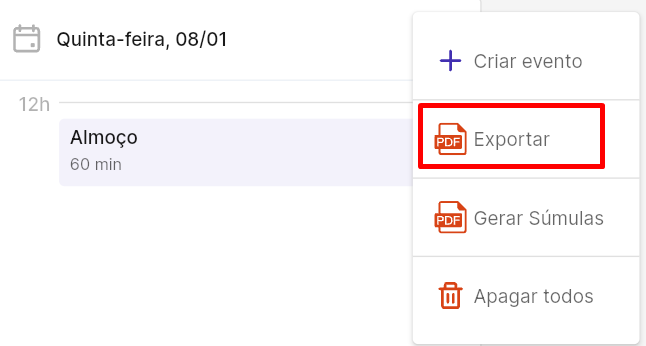 Depois de configurar tudo, você pode gerar um PDF com o cronograma completo pra imprimir e divulgar no evento.